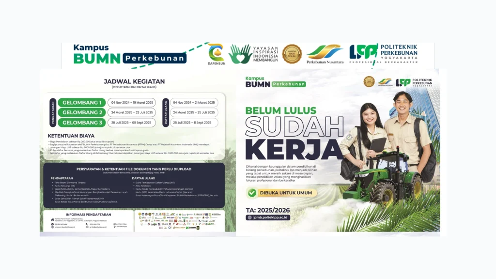 Politeknik Favorit di Indonesia – Politeknik LPP Yogyakarta, Kampus Vokasi yang Siap Antar Kamu ke Dunia Kerja! Saat banyak siswa SMA/SMK bingung memilih kampus, satu nama terus jadi sorotan: Politeknik LPP Yogyakarta. Bukan tanpa alasan, kampus ini dikenal sebagai politeknik favorit di Indonesia—terutama buat kamu yang ingin cepat kerja di sektor industri dan perkebunan. Kalau […]